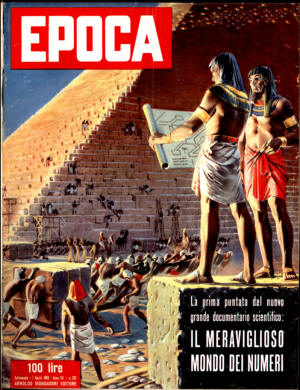La vita italiana attraverso le pagine di Epoca Siamo in possesso di una raccolta quasi* completa del famoso settimanale Epoca, dal primo numero (ottobre 1950) fino al settembre 1995. Poi abbiamo tanti numeri sparsi fino al 1997 (per sapere con esattezza quali numeri abbiamo, guarda l'elenco delle copertine). Pensiamo che possa essere piacevole sfogliarne ogni tanto qualche fascicolo, ripercorrendo così la nostra storia, non solo quella che si studia sui libri, ma soprattutto quella piccola, della provincia, della pubblicità, degli avvenimenti sportivi o culturali di un momento. Per condividere con voi questo piacere pubblichiamo ogni tanto la scansione completa di un fascicolo, da sfogliare rapidamente o leggere, a seconda dell’interesse. Nella seconda parte di questa pagina potete trovare un numero crescente di estratti, quasi tutti richiestici da persone impegnate in ricerche o studi specifici (vedi Nota di copyright qua sotto). Alcuni di questi sono raggruppati secondo secondo vari argomenti. Chiedete pure