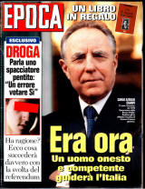 in modo tragico. Anno XXIX n. 1433, 22/03/1978 (pubbl. 13 aprile 2015) Edizione straordinaria. A caldo, la tremenda cronaca del rapimento di Aldo Moro da parte delle Brigate Rosse Anno XXIX (Vol. CXII) n. 1457, 09/09/1978 (pubbl. 11 ottobre 2019) ![]() ![]() Numero speciale dedicato all'elezione di Papa Giovanni Paolo I. Il fascicolo contiene un inserto speciale di 32 pagine che si può scaricare a parte. Tra gli altri servizi un documento sullo sfruttamento del lavoro minorile. Anno XXIX (Vol. CXII) n. 1464, 28/10/1978 (pubbl. 13 ottobre 2019) ![]() ![]() Numero speciale dedicato all'elezione di Papa Giovanni Paolo II. Il fascicolo contiene un inserto speciale di 20 pagine che si può scaricare a parte. Un altro inserto è dedicato alla Polonia di quei giorni.Tra gli altri un servizio sullo storico giornale inglese Times, uno sull'ultimo film di Ingrid Bergman e una proposta di legge per l'eutanasia... Anno XXX n. 1505, 11/08/1979 (pubbl. 7 agosto 2016) Richiesto da una lettrice interessata a un servizio sull’estate in Versilia, abbiamo deciso di digitalizzarlo completamente dati i temi affrontati, non solo di tipo estivo considerando la data di copertina. Quest’ultima è dedicata a un inserto staccabile sullo sport del momento, il windsurf, lanciato in Europa proprio l’anno prima e destinato a diventare il simbolo delle spiagge degli anni ’80, così come era stato il surf negli anni ’60 sulle coste della California. Ma si parla anche di Alfa Romeo allora in crisi, dell’eredità di Marcuse, della Camargue e, appunto, della Versilia ieri e oggi. La riscoperta della bicicletta come scelta ecologica e anticrisi è illustrata in un inserto staccabile (richiesto da un lettore). Altri articoli di questo numero di fine anni '70: i cambiamenti climatici, un lungo servizio su Jorge Luis Borges in occasione del suo ottantesimo compleanno, una nuova puntata dell'annoso "caso Sindona" Anno XXX n. 1508, 01/09/1979 (pubbl. 15 ottobre 2013) Anche questo fascicolo viene pubblicato su richiesta di un lettore. Si parla del Palio di Siena, della Foresta Nera, della politica italiana verso gli anni ’80 (Compromesso storico ecc.). Un inserto insegna tutto sui motorini e i ciclomotori (che nel ’79 si guidano senza patente, senza targa e senza casco) Anno XXXI n. 1552, 5 luglio 1980 (pubbl. 12 maggio 2014) L’Italia ancora in pieno sviluppo industriale, col PIL e l’inflazione che si inseguono con percentuali altissime. Il servizio centrale a colori di questo numero è dedicato a Siena e ai suoi imprenditori di successo. Inoltre si parla dell’estinzione delle balene e di Stefania Sandrelli all’apice della sua popolarità (servizio fotografico). Anno XXXIII n. 1631, 08/01/1982 (pubbl. 15 gennaio 2015) Questo fascicolo ci è stato richiesto da una lettrice interessata alla città di Trieste, su cui compare un bel servizio a colori. Un altro servizio è dedicato a Ravenna e ai suoi sotterranei, e ai lussi di Cortina d’Ampezzo. Sono i tempi di Lec Walesa e di Solidarnosc, del giovane Papa polacco, di Craxi e ancora, purtroppo, delle Brigate Rosse. Mariangela Melato spopola negli Usa e lo skipper Cino Ricci prepara la sua America’s Cup su barche da sogno. Anno XXXIII n. 1655, 25/06/1982 (pubbl. 12 maggio 2016) Fascicolo richiesto da una lettrice per un servizio sul film “La Traviata” di Franco Zeffirelli. In questi primi anni ’80 gli argomenti interessanti non mancano: la nascita del figlio della coppia reale (in copertina), la vicenda di Guido Calvi, il banchiere dell’Ambrosiano, il governo Tatcher a Londra, la Biennale dell’Arte di Venezia. Inoltre si parla già di “fuga dei cervelli”, nella persona dell’astrofisico Coppi che lavora negli Usa, e ovviamente dei Mondiali di calcio, che non promettono tanto bene poche settimane prima del grande trionfo azzurro. È molto bella, e simpatica, una doppia pagina pubblicitaria della Fiat Panda. Anno XXXVI, n. 1825, 27/09/1985 (pubbl. 22 luglio 2019) ![]() Richiesto da uno studente. Partono in Italia i trapianti di cuore, dopo anni di attesa. Si compie il grande errore giudiziario nei confronti del presentatore Enzo Tortora: condannato. Un bel servizio a colori sull'Europa di inizio secolo. Anno XXXIX, n. 1945, 17/01/1988 (pubbl. 25 agosto 2022) ![]() Un numero del periodo d'oro della televisione leggera e scanzonata, e con lo sdoganamento della politica basata anche sui seni nudi di Ilona Staller. ![]() Richiesto da un lettore, contiene un servizio di 30 pagine sulla strage di Via D'amelio dove fu ucciso il giudice Borsellino. In pagine più leggere si parla per la prima volta di Karaoke, di problemi autostradali, di Marilyn Monroe e di varietà televisivi. ![]() L'Italia esce malconcia dallo scandalo di "Mani Pulite" che ha coinvolto l'intera classe politica. Vi è tuttavia un grande ottimismo per il futuro, e questo fascicolo lo dimostra. In campo calcistico domina un imprendibile Milan di Berlusconi, con i suoi assi Gullit e Van Basten. ![]() La copertina è dedicata a Carlo Azeglio Ciampi (futuro Presidente della Repubblica), che ha appena ricevuto dal Presidente Scalfaro l'incarico di formare il nuovo governo. Intanto è in corso la sanguinosa guerra nell'ex Yugoslavia, con una feroce strage a Srebrenica. Continuano gli scandali italiani, sulla scia di "mani pulite". Molta pubblicità di auto e orologi di lusso, e qualche computer.